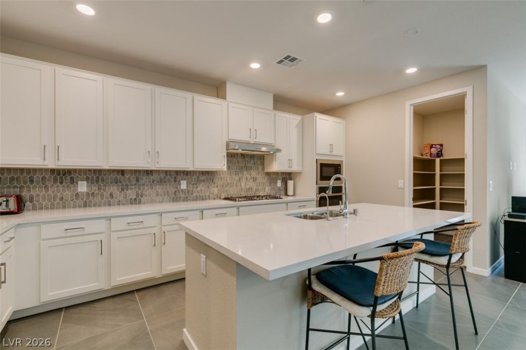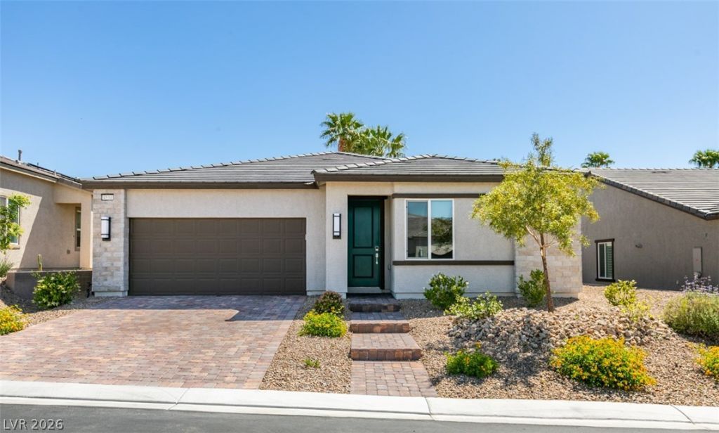 Come see this premier 2022 Taylor Morrison build. This home features a contemporary facade with decorative white stone, dark flat tiles, and a modern roofline. Entering the home, you'll be greeted by a wide, welcoming corridor. The kitchen features stainless steel appliances, a built-in oven, a large 8-foot island, a generous walk-in pantry, quartz countertops, and a backsplash featuring a gray elongated hex mosaic. The kitchen is off the great room, contributing to the home's open layout. The great room factors plenty of windows, allowing natural light to fill the space. The primary bedroom and bathroom are beautiful and practical. Notable features of the primary bath include a large walk-in shower with ivory-gray tile, a large vanity with Arctic White shaker cabinets, and a solid-surface composite countertop. The primary bathroom opens into the walk-in closet, which conveniently exits into the laundry room! Don't miss out on this gem?schedule a showing today!