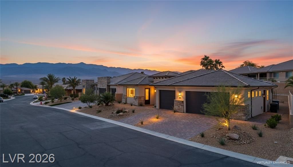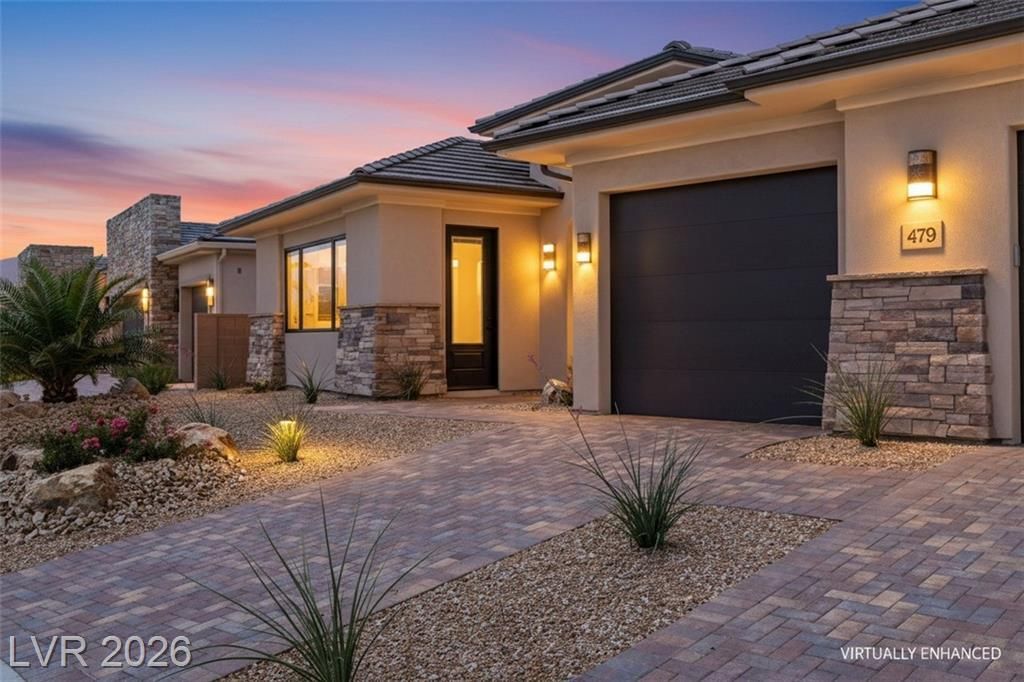 This thoughtfully designed 3-bedroom, 2-bathroom residence offers beautiful street appeal with low maintenance landscaping, paver driveway & Walk ways, & a gorgeous courtyard entry that welcomes you in. Once inside, appreciate the many features that includes 11' & 9' Ceilings, durable & stylish stained & sealed concrete flooring throughout, energy-efficient 2x6 construction with spray foam insulation, solar tubes & many more modern touches. The kitchen boasts granite counters, tiled backsplashes, barn door to the pantry, LG Appliances, pendant lights & beautiful soft close cabinetry. Enjoy a beautifully appointed master suite with, electric fireplace, a luxurious soaker tub, tiled walk-in shower, dual vanities, and a convenient pass-through closet leading to the laundry room. 220v outlets at patio & garage, holiday package, Rain gutters, a covered patio with sunscreen shade, and breathtaking mountain views complete the package. Experience comfort, function, and elegance @ 479 Apogee