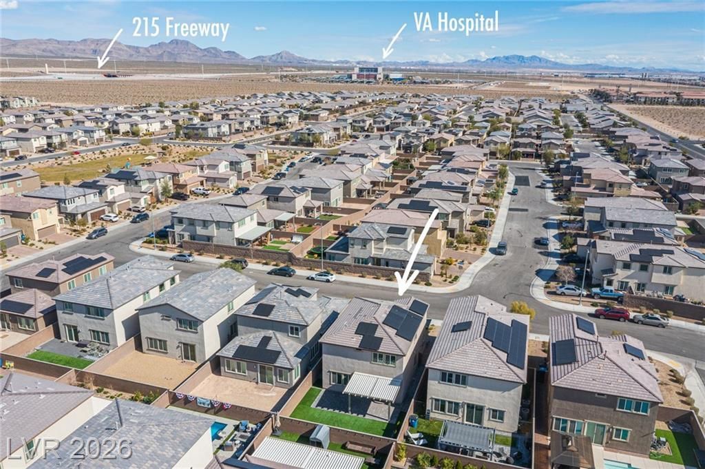 Stunning 2-story, 4 bedroom home with loft and downstairs bedroom with full bath, perfect for guests or multi-gen living! TURN KEY and PRICED TO SELL - BETTER than NEW!! Upgraded tile flooring throughout the downstairs, neutral paint, ceiling fans in every room, tasteful finishes create a bright, inviting feel. The kitchen features upgraded cabinets, quartz countertops, and plenty of space to cook and gather. Vaulted ceilings enhance the open, airy layout. Step outside to a professionally landscaped backyard with covered patio ideal for relaxing or entertaining. Solar keeps your electric at a FIXED $180/month! Super convenient location near the 215 freeway, VA Hospital, Air Force Base, and plenty of shopping! This home is the complete package! Don't wait, it won't last!