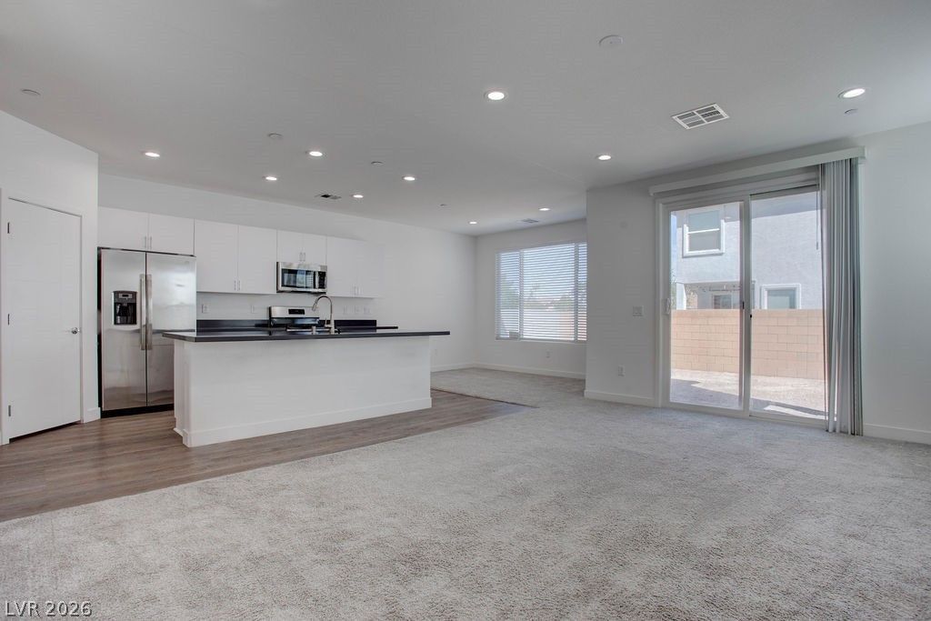 Well-maintained 3-bedroom home with a 2-car garage and access to a community pool and spa. This home features a spacious living room, dining area, and an upstairs loft that can be used as a second living space, office, or play area. The kitchen is equipped with an island, recessed lighting, stainless steel appliances and sink, a pantry, and a refrigerator with ice maker?perfect for everyday convenience. The primary bedroom includes a ceiling fan with light, while the primary bathroom offers a walk-in closet and dual vanity sinks. All bedrooms feature ceiling fans for added comfort. The laundry room is conveniently located upstairs near the bedrooms. All appliances are included, making this home move-in ready. Enjoy comfortable living with great community amenities in a desirable location.